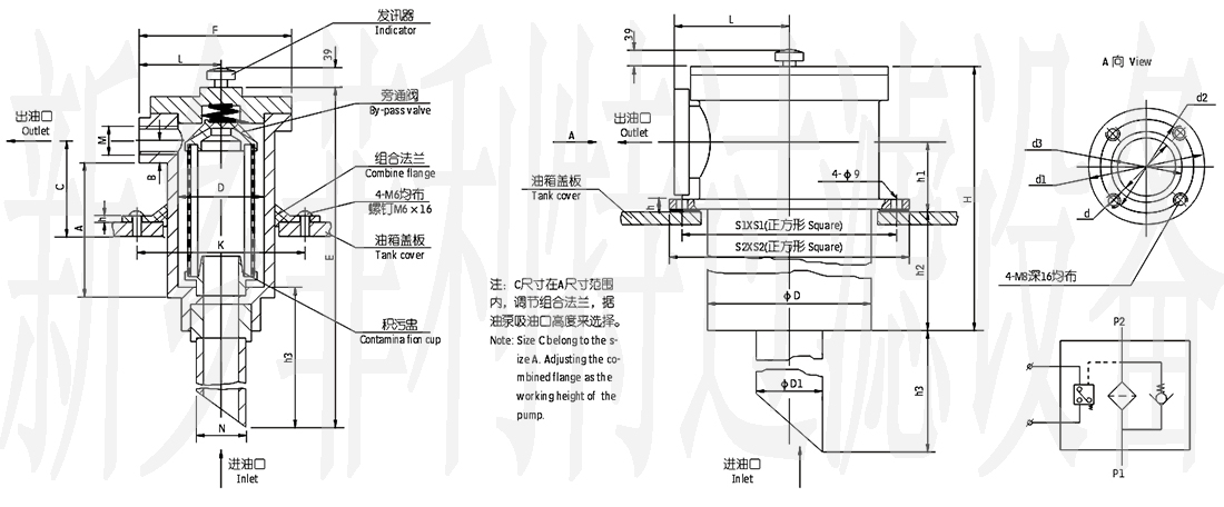 1、安裝連接方便:本過(guò)濾器可安裝在油箱蓋板上面或側(cè)面,過(guò)濾器的濾頭露于油箱外,吸油管從油箱上面或側(cè)面插入油面,出油口與泵吸油口相連接,25~160L/min規(guī)格設(shè)有組合活動(dòng)法蘭,連接高度可以上下調(diào)節(jié),從而實(shí)現(xiàn)油箱全封閉,進(jìn)一步防止污染物進(jìn)入油箱。