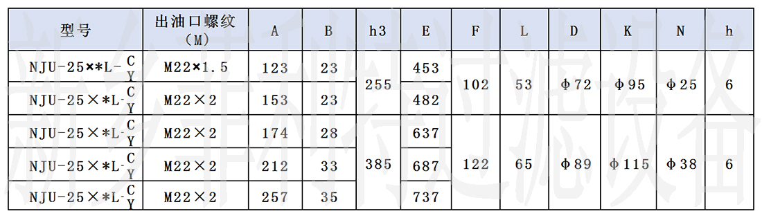 1、NJU-25~160型(對(duì)照表一) 2、NJU-250~800型(對(duì)照表二)