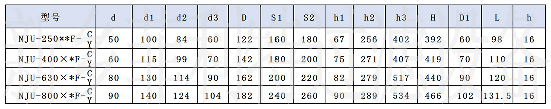 表二;NJU-250~800法蘭連接參數(shù) 單位;mm