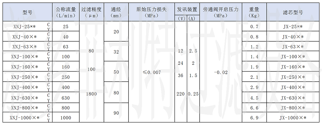 型號(hào):XNJ系列過濾器
