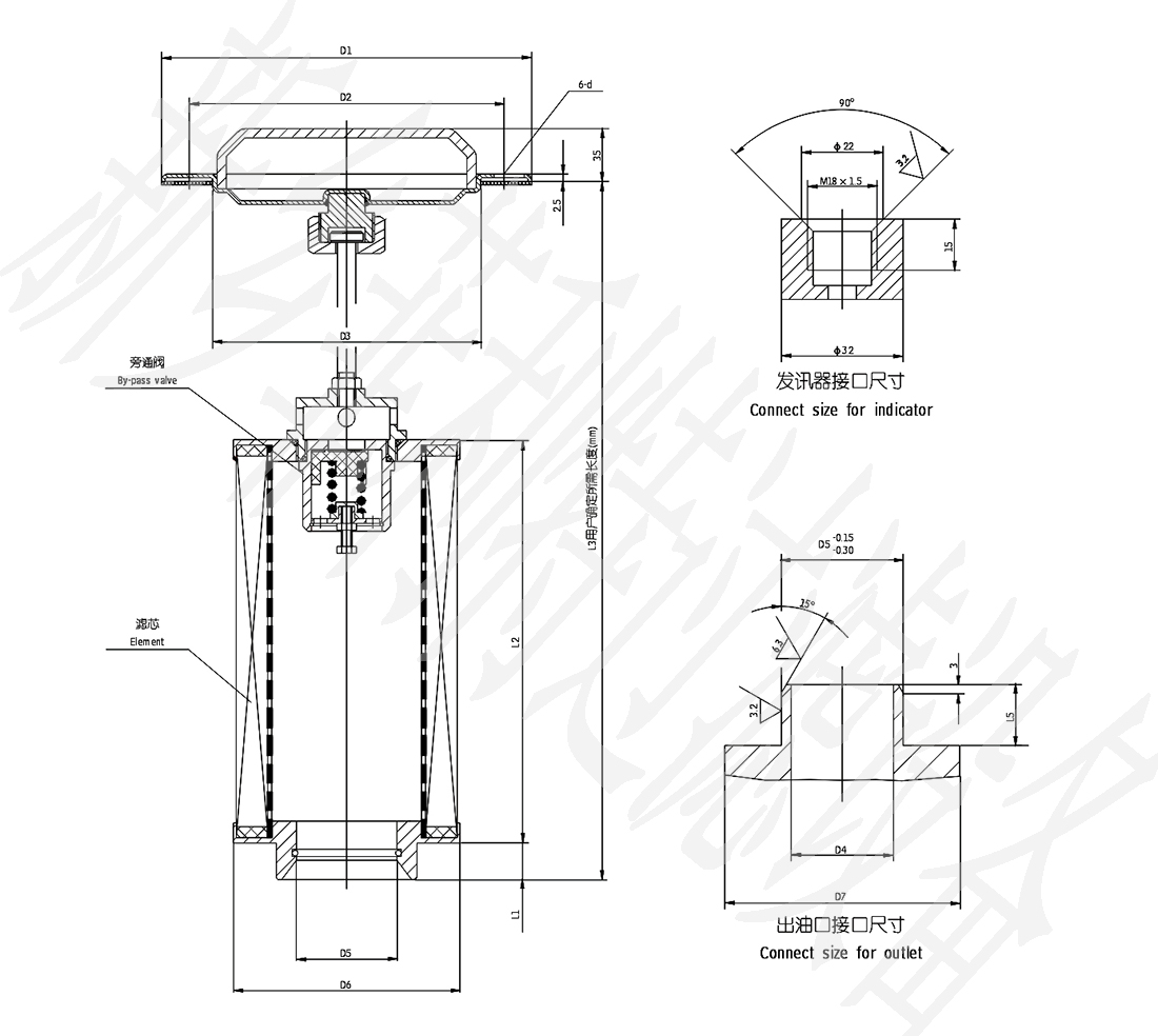 XNJ系列箱內(nèi)吸油過濾器具有以下特點(diǎn):a.安裝連接方便:本系列吸油過濾器通過安裝法蘭固定在油箱的蓋板上,濾芯直接插入油箱,從而簡化了系統(tǒng)的管路,節(jié)省空間,使系統(tǒng)布置更緊湊。B.清洗或更換濾芯時(shí),只要擰開安裝法蘭上的螺釘、拉起安裝法蘭,即可清洗或更換。C.帶有濾芯堵塞發(fā)訊裝置:當(dāng)濾芯被污染物堵塞到真空壓力為-0.018MPa時(shí),發(fā)訊器發(fā)出開關(guān)信號(hào)(用戶外接電信號(hào)),這時(shí)應(yīng)及時(shí)更換或清洗濾芯,以免油泵出現(xiàn)吸空等故障。d.帶有旁通閥:當(dāng)濾芯被污染物堵塞到真空壓力為-0.018MPa時(shí),此時(shí)如不能馬上停機(jī)清洗或更換濾芯,裝在濾芯上端的旁通閥會(huì)自動(dòng)開啟(開啟壓力為-0.02MPa),以保護(hù)油泵正常工作。