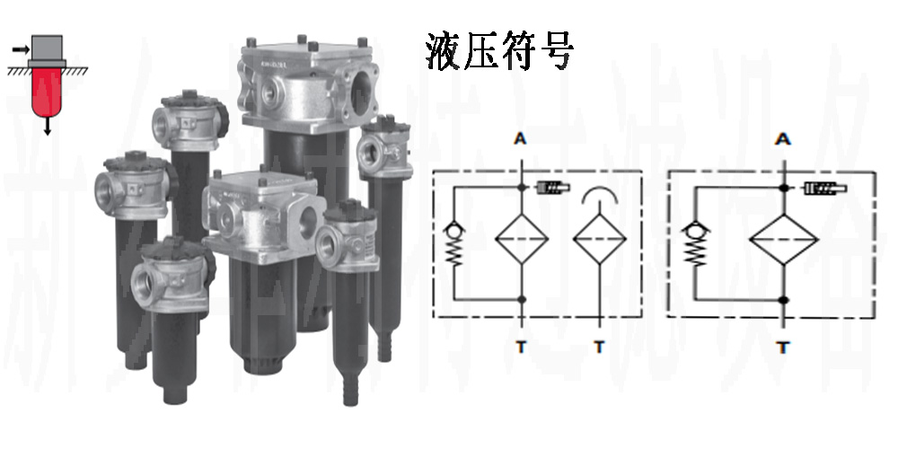 4、設(shè)有油路旁通裝置,當濾芯堵塞,發(fā)訊器報警后不能立即處理故障,進油口壓力升到技術(shù)參數(shù)表中規(guī)定值時,旁通閥便會自行開啟,另開油路,以保護過濾器免受損壞,確保系統(tǒng)照常運行。