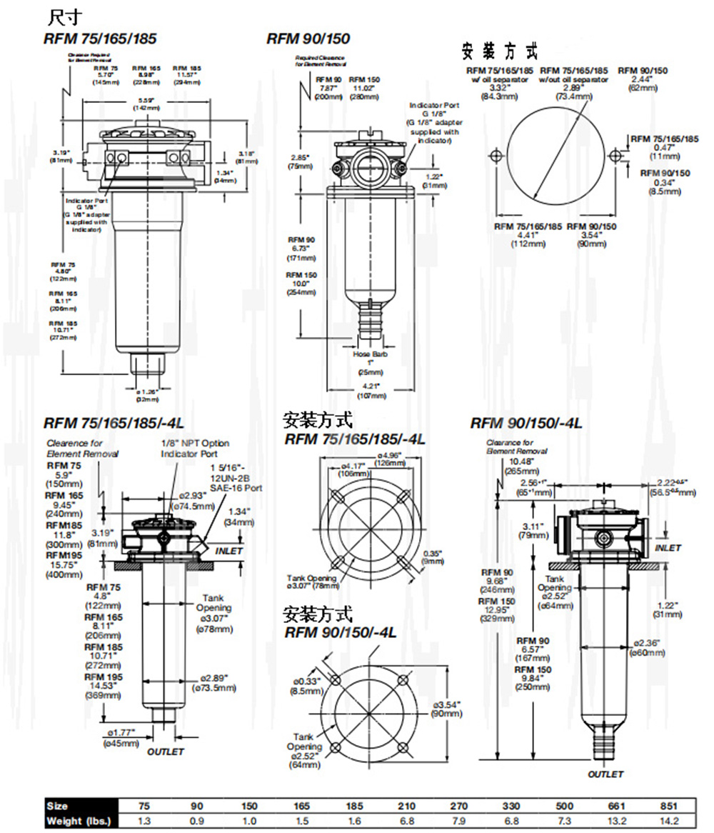 •尺寸75/90/150/165/185,配有4或2螺栓油箱法蘭。