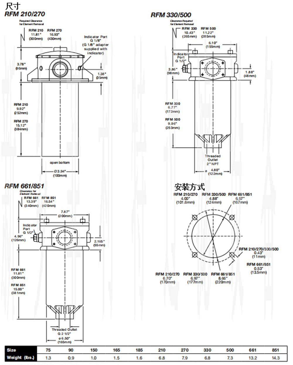 •RFM 90/150/210/270落下更換“罐頂”過濾器。
