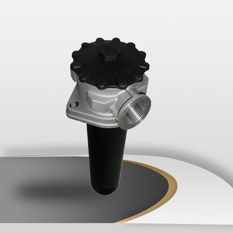 2、過濾器直接安裝在油箱蓋板上,筒體伸入油箱的油液中。進油口設(shè)有螺紋和法蘭連接方式,與回油管路連接,管路簡單,安裝方便。