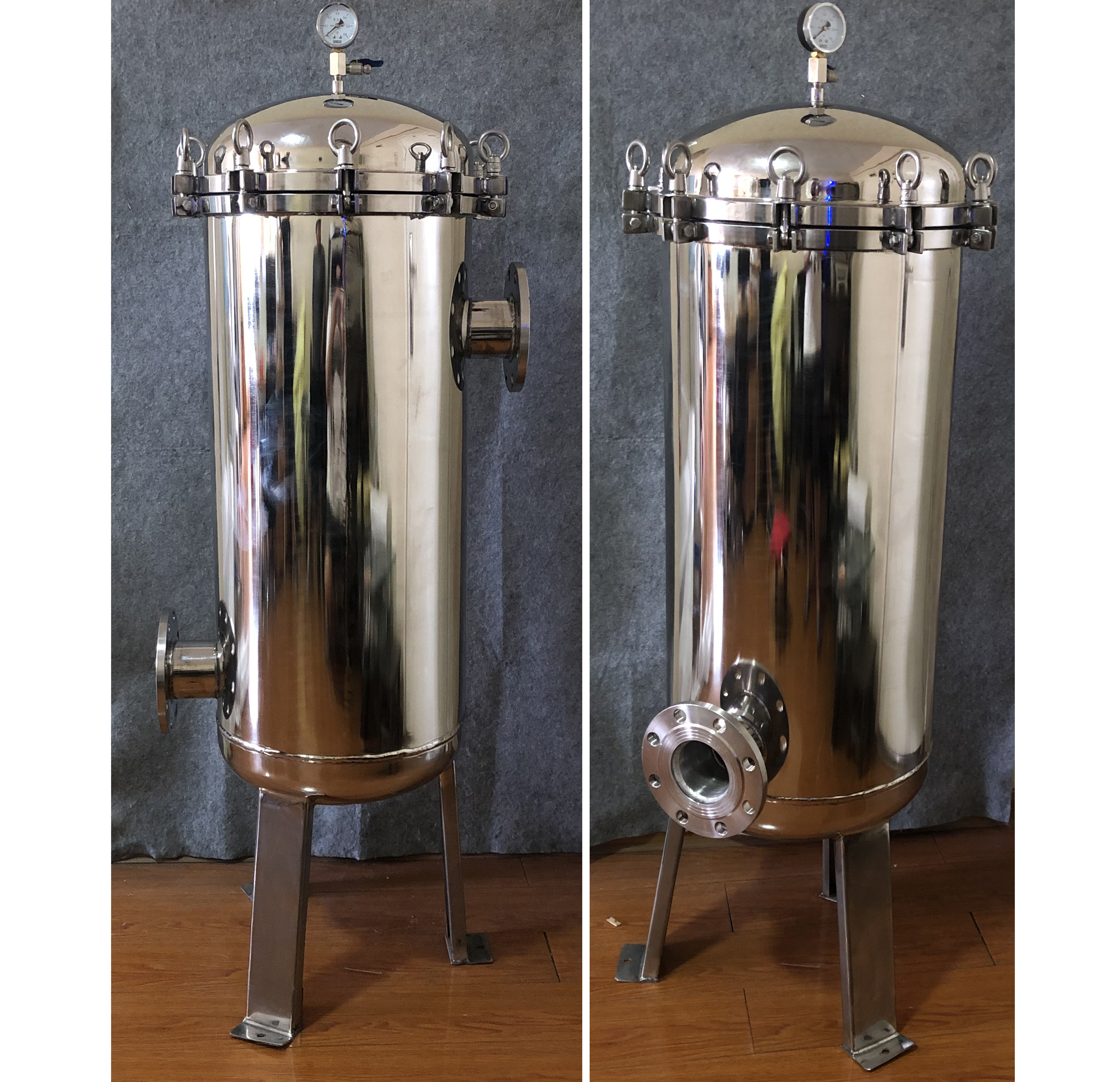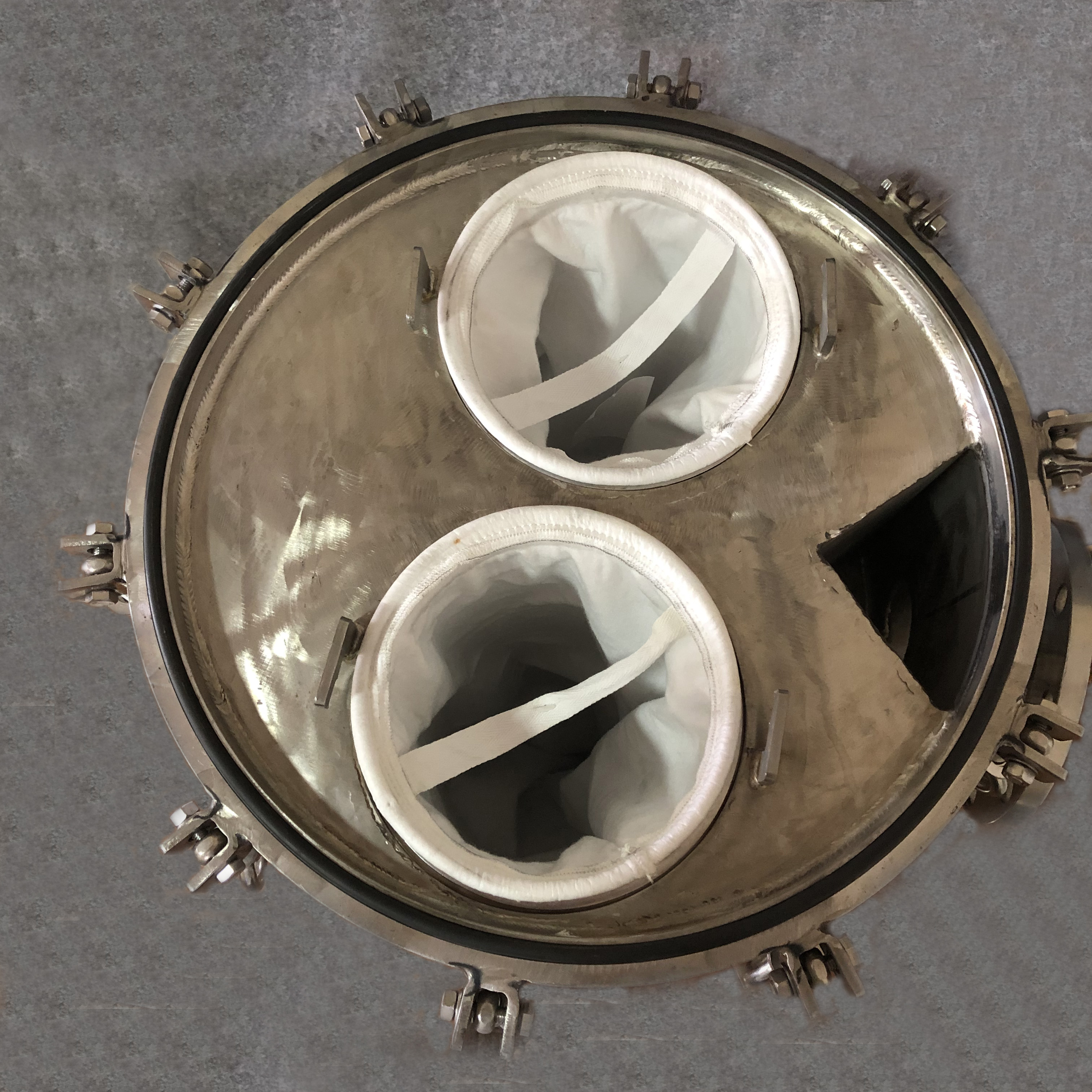 液體從濾袋內(nèi)表面流向外表面,濾除的顆粒雜質(zhì)被截留在濾袋內(nèi),確保更換濾袋時不致污染下游液體。以高強(qiáng)度不銹鋼絲網(wǎng)支撐的支撐濾藍(lán),令過濾系統(tǒng)中的過濾表面積大大提高,提供了一個大而暢通的過濾表面。