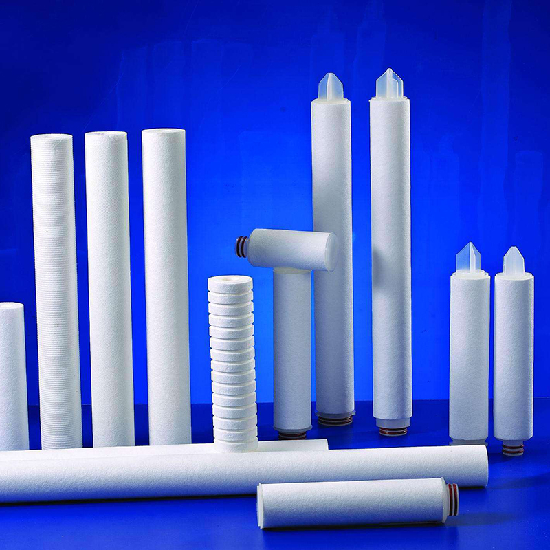 濾芯由聚丙烯超細(xì)纖維熱熔纏結(jié)制成,不適用任何化學(xué)粘合劑,纖維在空間隨機(jī)自粘合形成三維微孔結(jié)構(gòu),布集表面、深層、粗濾于一體,由于纖維和密度在濾芯的直徑方向形成高過濾